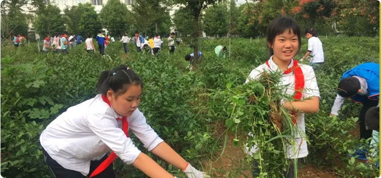 在拔草活动中,同学们戴上手套,在基地老师的指导下,以班级为单位,开展拔草比赛。他们互相合作,想出了许多办法,有的班级从后往前传草,有的班级则找来袋子,把草装好后再统一送到前面,茶园里充满了大家的欢声笑语。